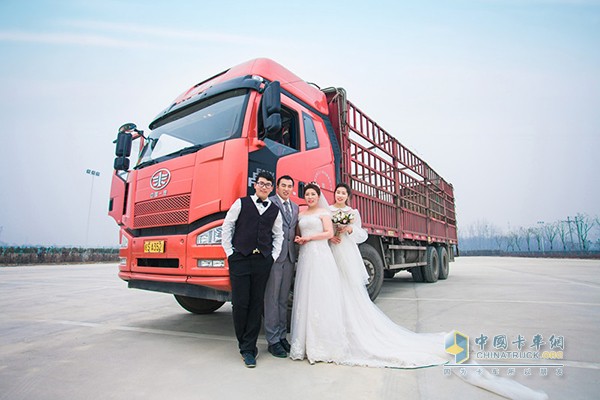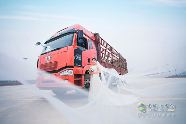 一汽解放為用戶毛東亮夫婦補拍的婚紗照