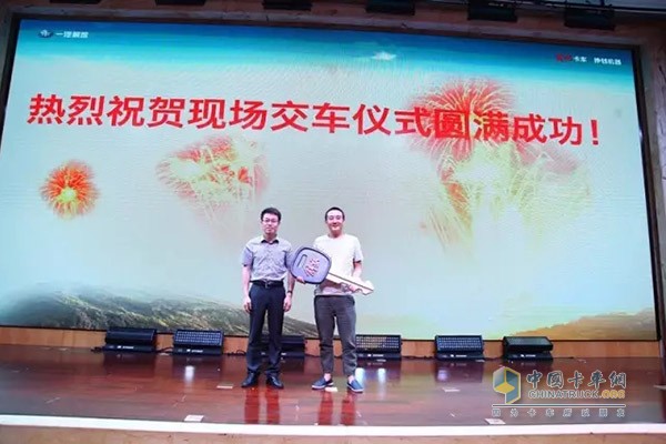 一汽解放汽車銷售有限公司西南營銷部銷售科科長李曉龍為大客戶交車