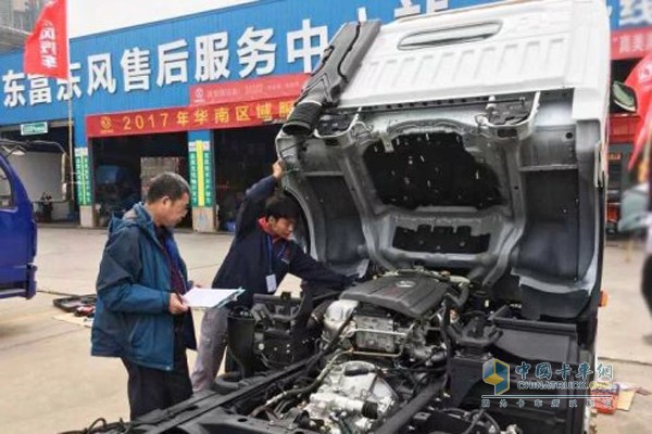 東風(fēng)輕卡服務(wù)技能大比武參賽選手認(rèn)真排除故障