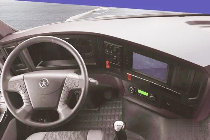 大空間駕駛室,拓寬司機活動范圍,自由度更高;多功能氣囊座椅,適應中長途運輸需要;半環繞儀表盤+液晶大屏讓數據顯示更清晰明了。