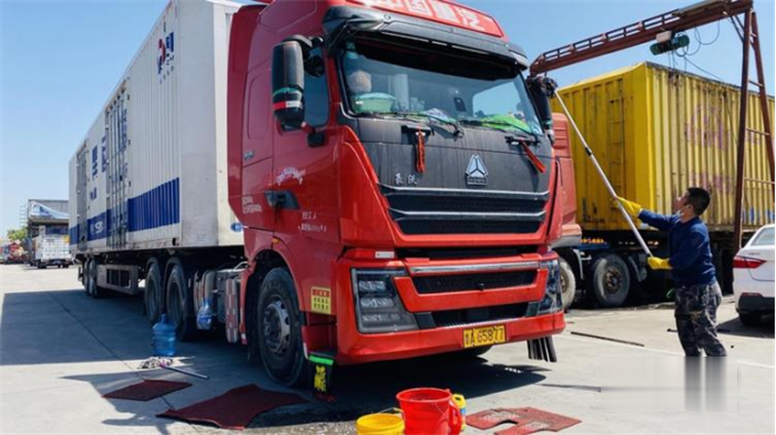 初夏的濟南算不上炎熱,伴隨著陣陣微風,甚至讓人感覺到一絲涼爽。結(jié)束了一趟長達3800多公里的往返運輸,眼前這臺豪沃TH7的兩位駕駛員付兵成和劉勇各司其職,一人整理車輛,另一人則安排運費結(jié)算及下趟運輸事宜。接下來,他們將有24小時的在濟時間,貨物一旦裝好,兩人將馬不停蹄地趕往廈門。讓我們一起走近他們的運輸生活。